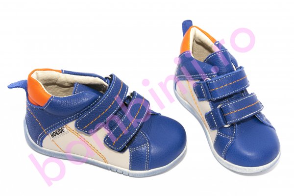 Ghete copii din piele cu talonet hokide 319 albastru bej 18-24