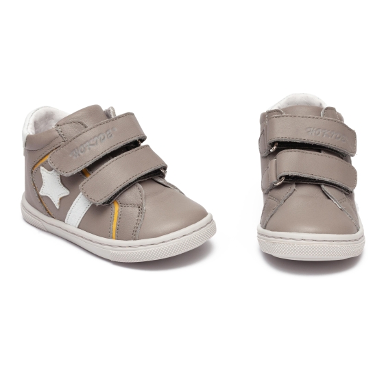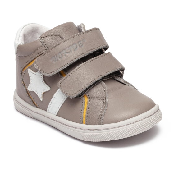 Ghete copii din piele cu talonet hokide 481 gri alb G 18-25