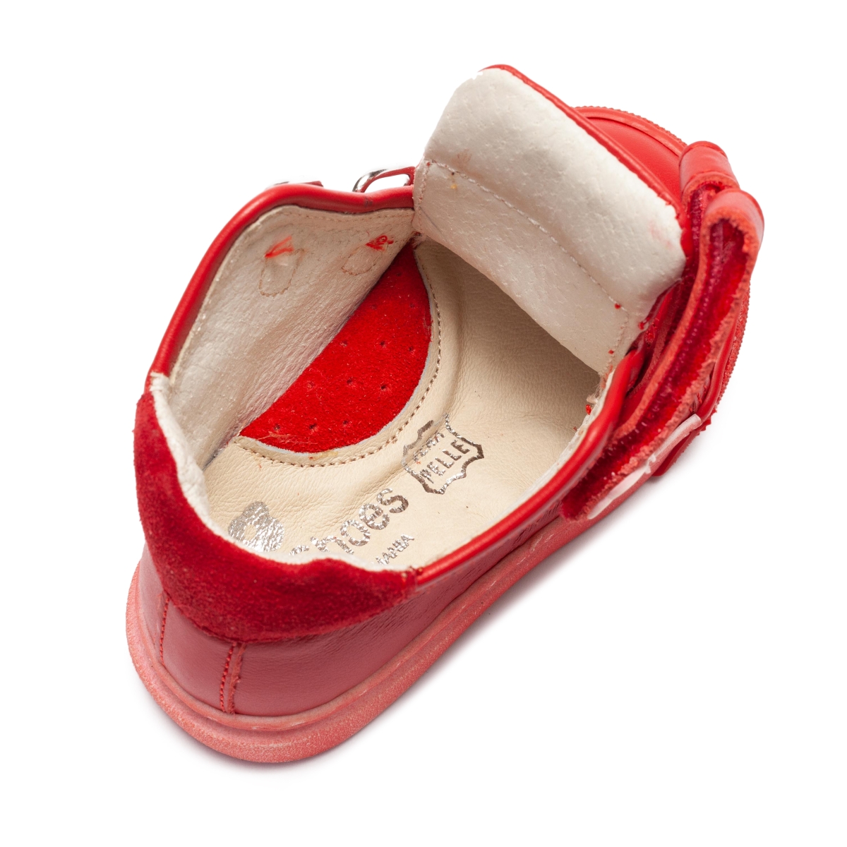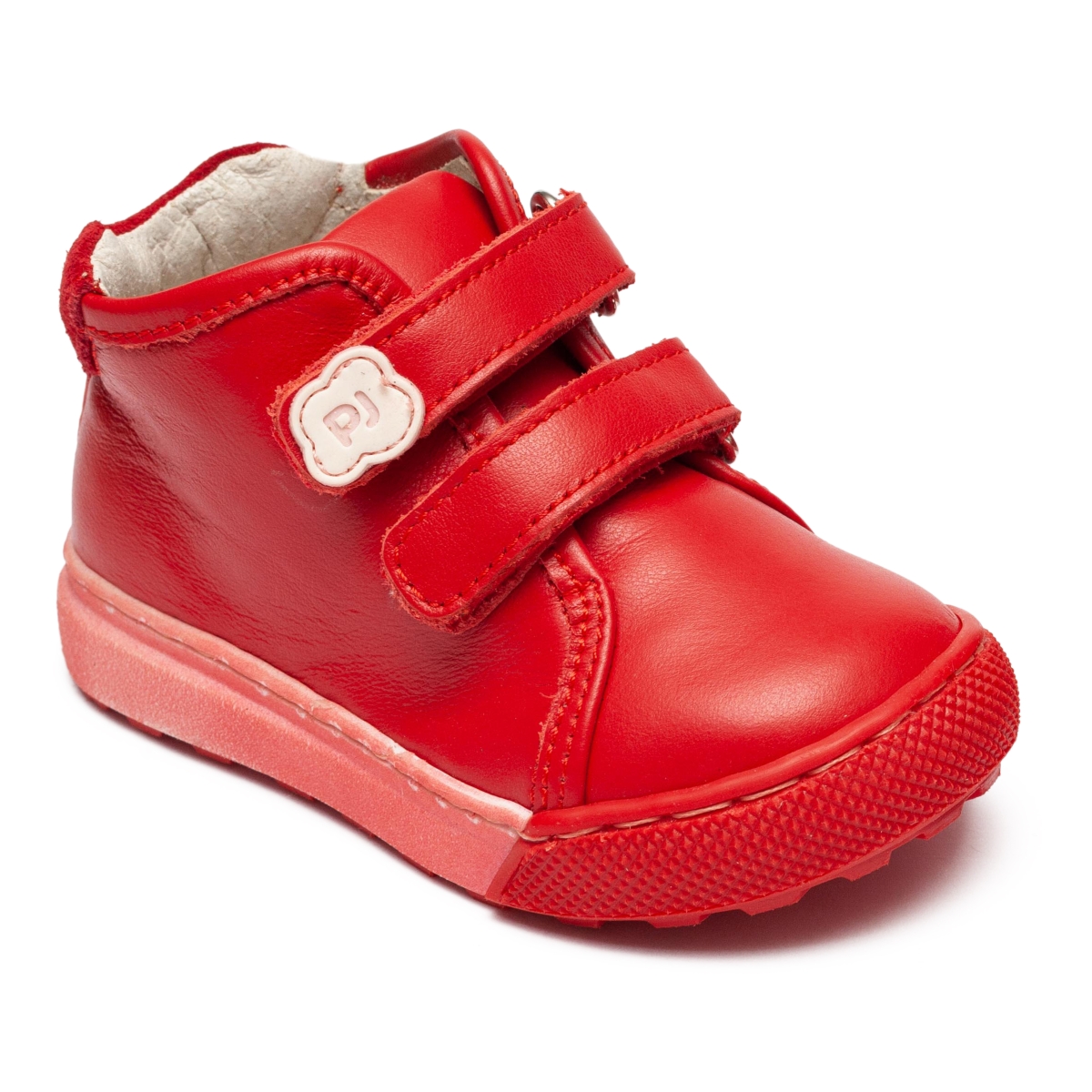 Ghete ortopedice fete din piele naturală PJ Shoes Seby roșu, cu talonet anatomic și talpă flexibilă. Susțin dezvoltarea corectă a piciorului și oferă confort zilnic.
