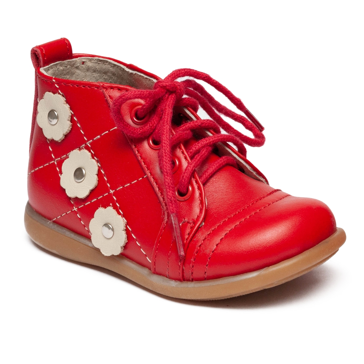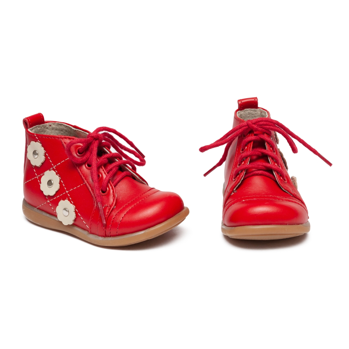 Ghete fete cu talonet din piele 1325 rosu flori albe TB 18-25