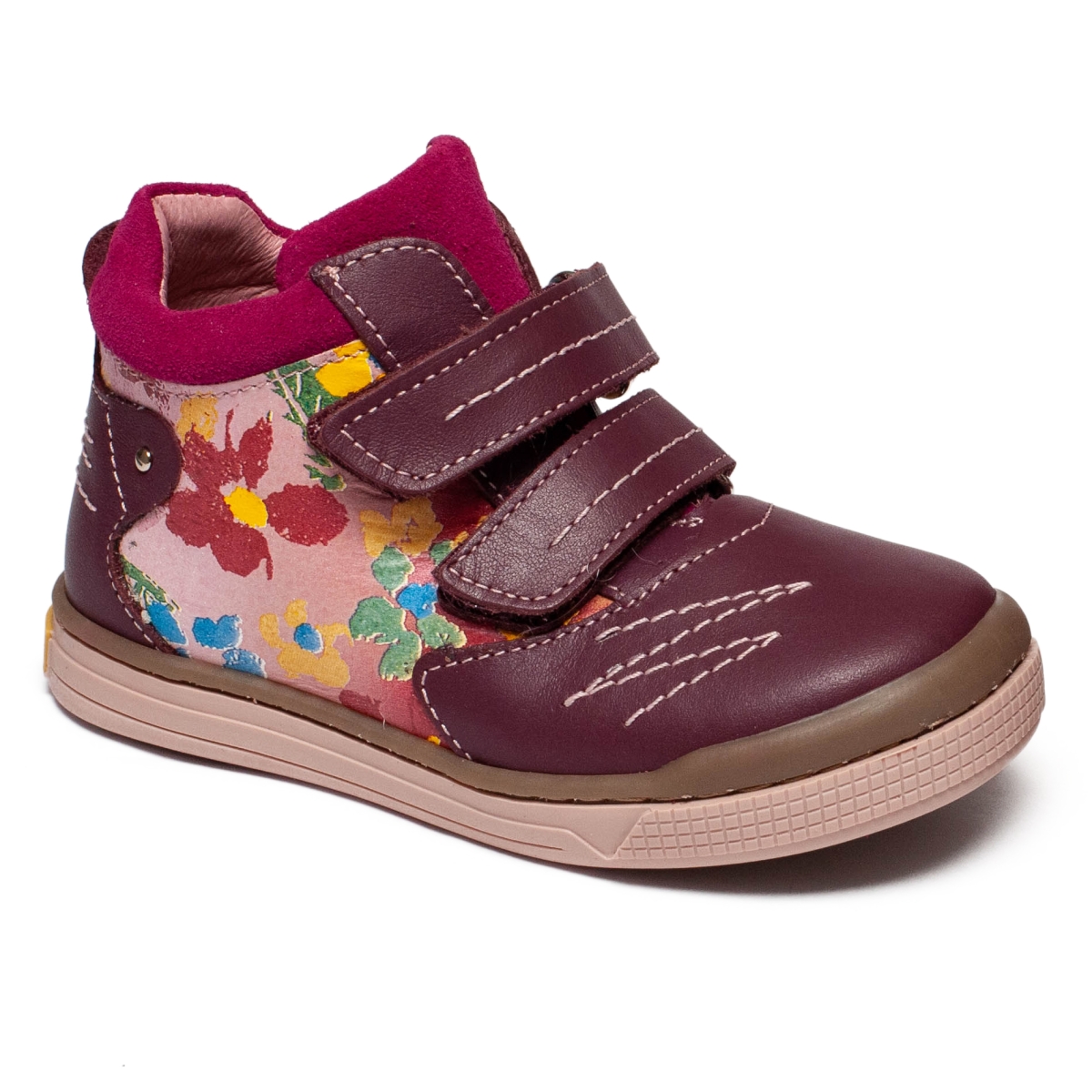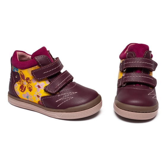 Ghete fete din piele AV624 bordo galben flori 18-30