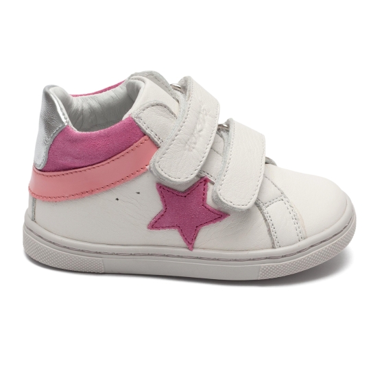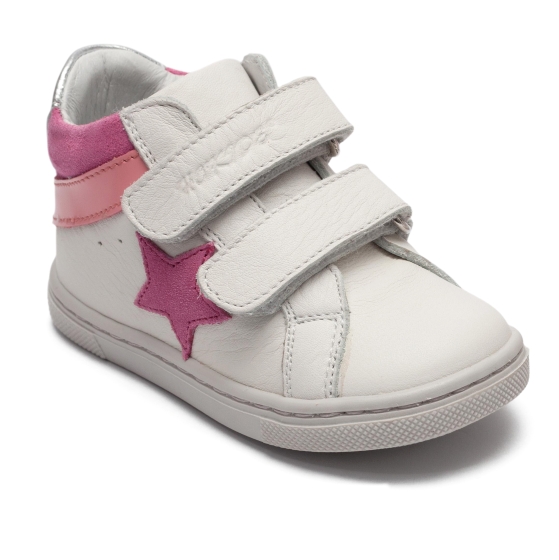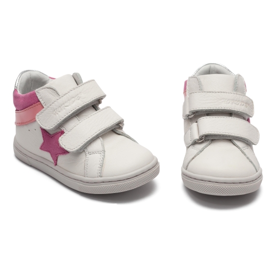 Ghete fete din piele cu talonet hokide 481 alb fuxia 18-25