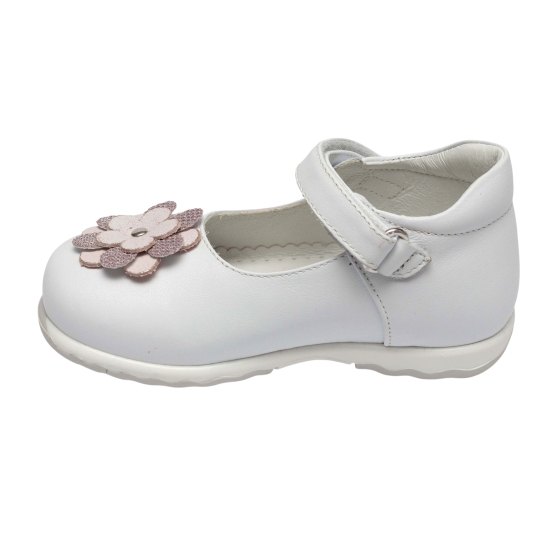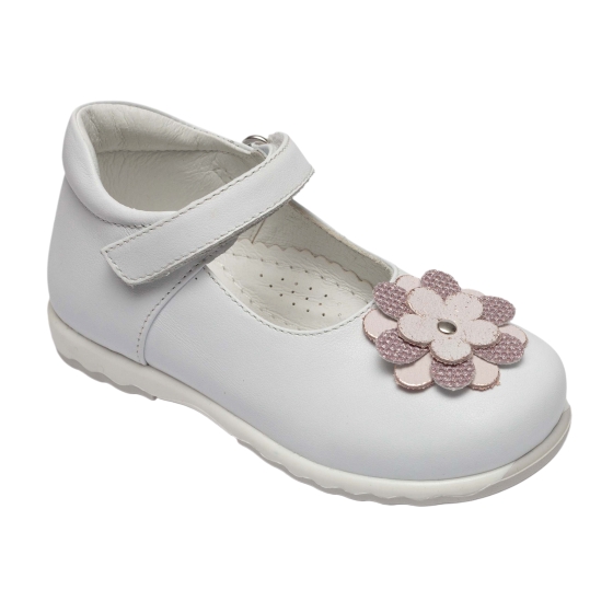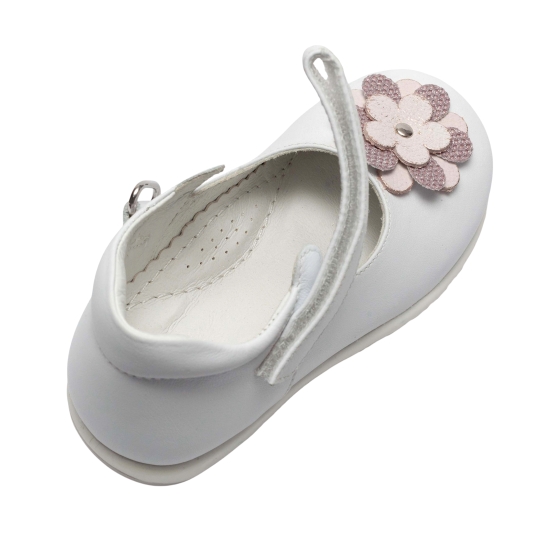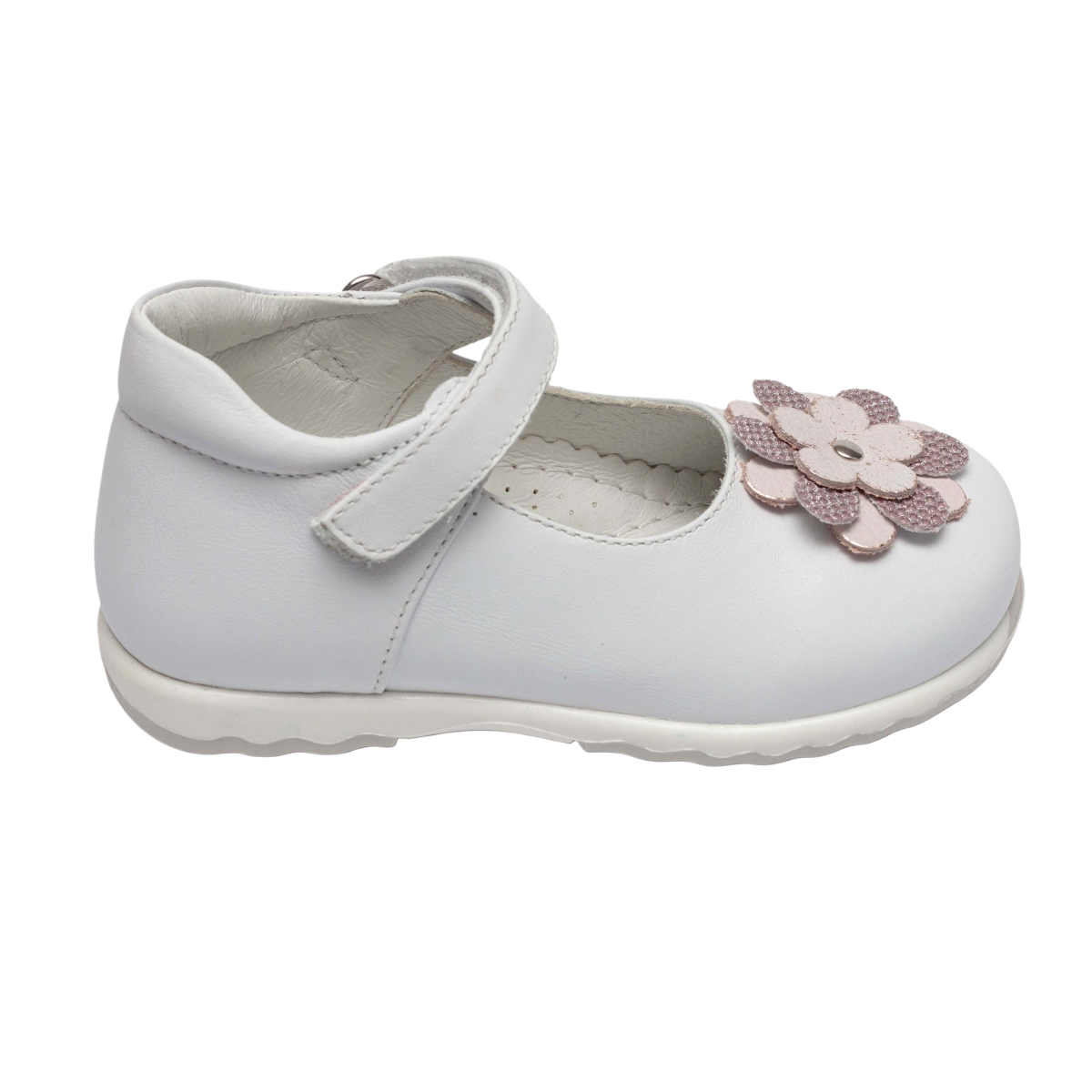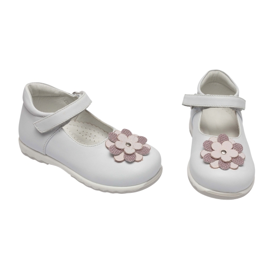 Pantofi balerini fete din piele cu talonet 803 alb floare (18–30) – alegerea ideală de încălțăminte copii pentru confort și eleganță. Acești pantofi copii cu talonet oferă susținere corectă, stabilitate și susținere pe gleznă, contribuind la dezvoltarea sănătoasă a piciorului. Realizați din piele naturală de calitate, acești balerini fete piele sunt comozi, ușori și perfecți pentru activitățile zilnice.