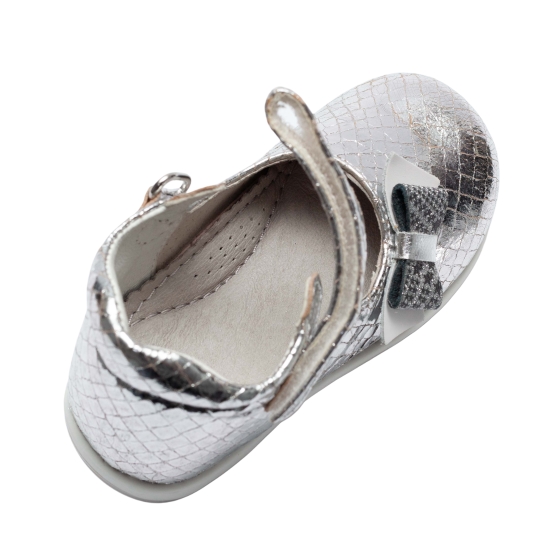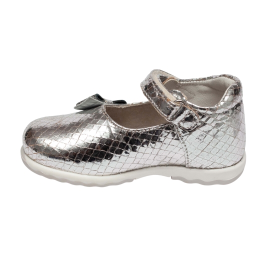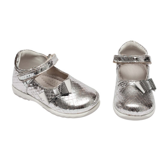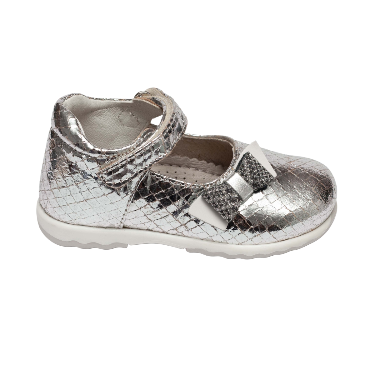 Alege pentru micuța ta pantofi copii cu talonet din piele naturală, creați pentru confort, eleganță și susținere corectă a piciorului. Pantofi 803 argintiu impresionează prin designul modern și delicat, fiind alegerea ideală pentru orice ținută.