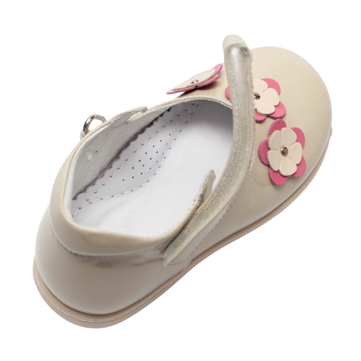 Pantofi balerini fete din piele cu talonet 803 bej lac cu flori (18–30) – alegerea ideală de încălțăminte copii pentru confort și eleganță. Acești pantofi copii sunt realizați din piele naturală și sunt prevăzuți cu talonet, oferind susținere corectă și stabilitate în mers. Perfecți ca balerini fete, sunt ușori, comozi și potriviți pentru activități zilnice sau ocazii speciale.