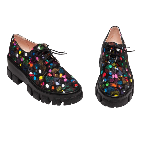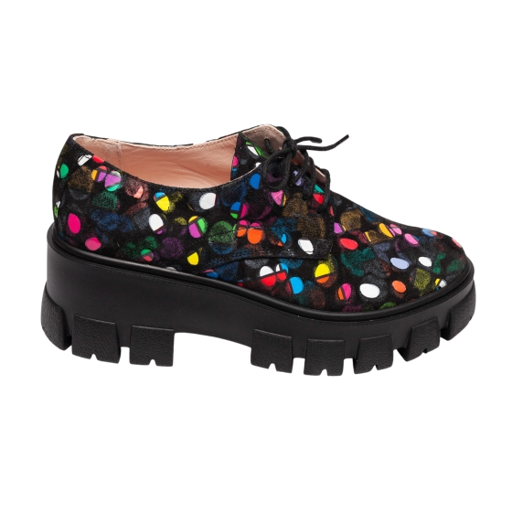 Pantofi fete din piele naturală multicoloră cu talpă groasă – comozi și moderni