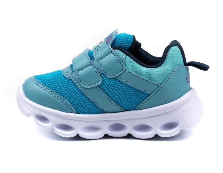 Adidasi cu leduri copii, pentru joaca, modelul Caty este fabricat din textil si material sintetic, atat la interior, cat si la exterior. Tenisii cu led sunt extrem de usori, iar talpa are LED-uri si lumineaza usor cu fiecare pas pe care il fac micutii.