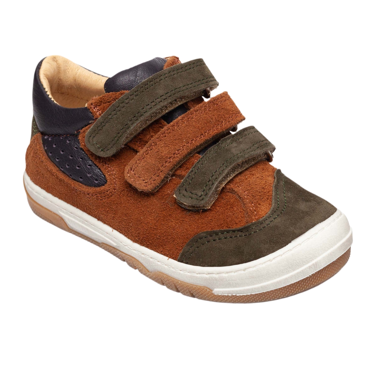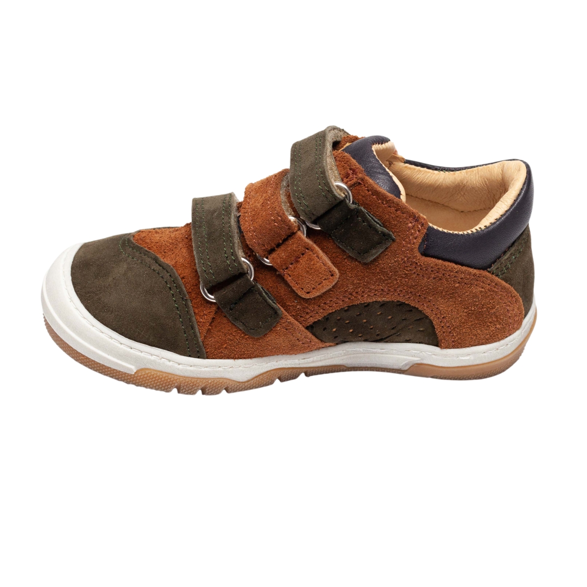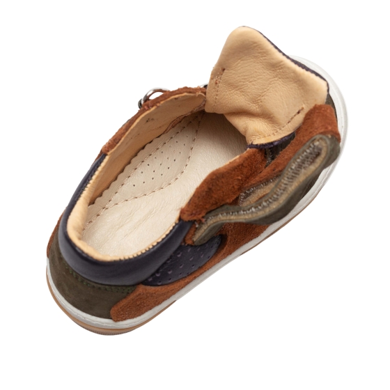 Pantofi sport copii din piele cu talonet 799 maro kaki blu (mărimi 19–30) – susținere și stil pentru primii pași