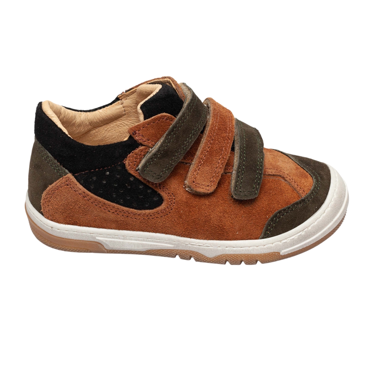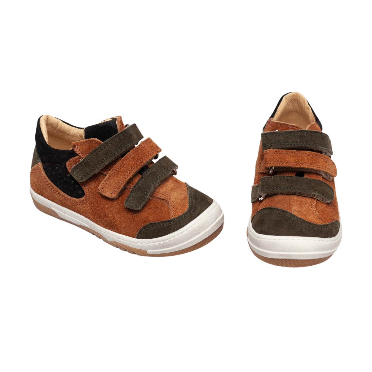 Pantofi sport cu talonet ortopedic pentru copii, model 799 maro kaki negru (19–30) – încălțăminte copii din piele naturală, concepută pentru susținerea corectă a piciorului. Acești pantofi cu talonet oferă confort, stabilitate și sunt ideali pentru purtare zilnică. Încălțăminte copii ortopedică, cu talpă flexibilă și închidere velcro pentru fixare rapidă și sigură.