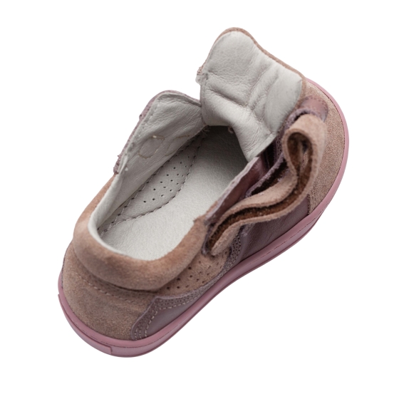 Pantofi sport copii din piele cu talonet, model 799 somon roz, ideali pentru primii pași și mers zilnic. Realizați din piele naturală interior și exterior, acești pantofi copii cu talonet oferă susținere corectă și confort. Talpa flexibilă și talpa cusută 360° asigură durabilitate și siguranță. Alege încălțăminte copii de calitate de pe bambinii.ro.
