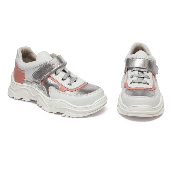 Pantofi fete sport din piele 471 alb arg roz 26-37