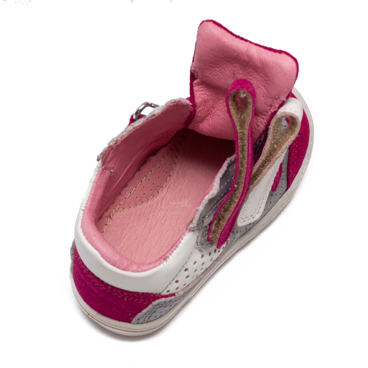 Alege pentru copilul tău o pereche de pantofi fete sport din piele cu talonet, creați special pentru confort zilnic, mers corect și libertate de mișcare. Modelul 799 fuxia alb gri combină designul vesel, materialele premium și funcționalitatea ortopedică, fiind alegerea ideală pentru fetițe active.