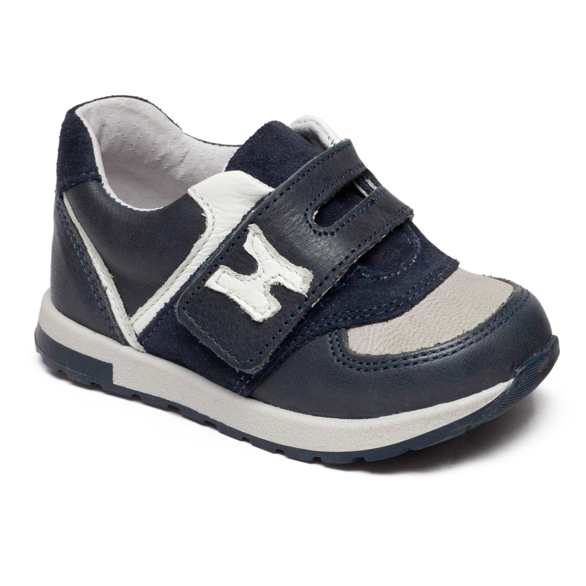 Pantofi hokide baieti sport din piele cu talonet 395 blu gri 19-25