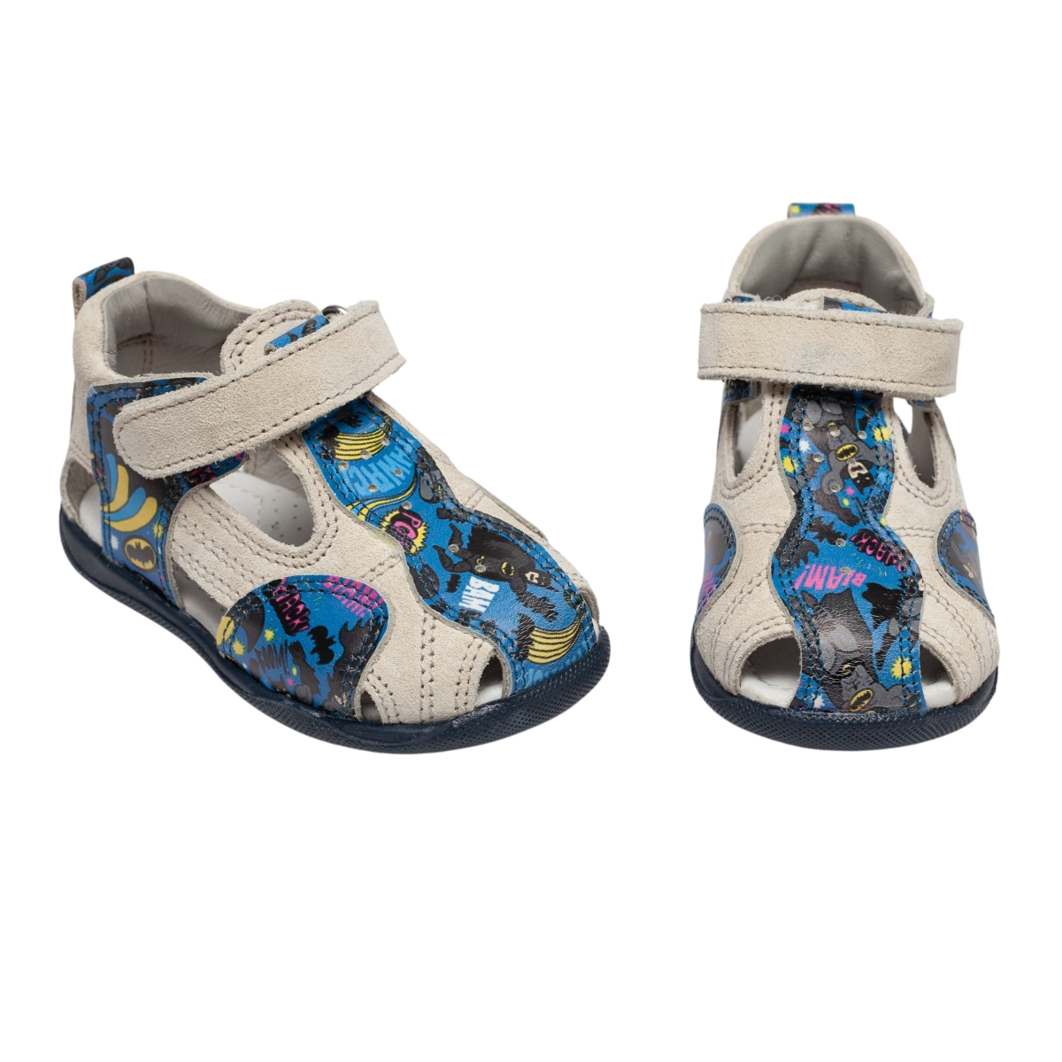 Sandale copii din piele cu talonet AV35 bej Batman (mărimi 17–30) – confort ortopedic pentru primii pași