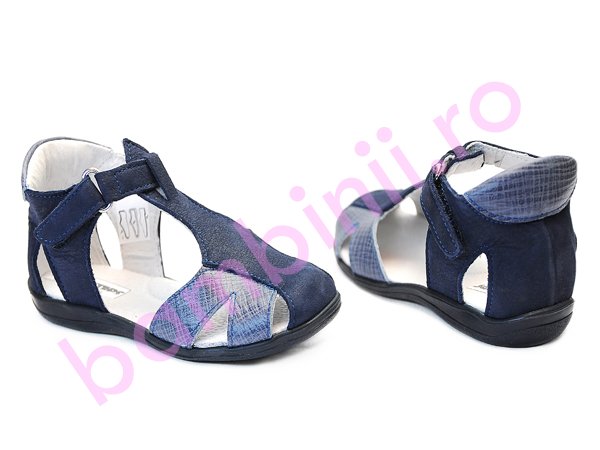 Sandale copii din piele cu talonet pj shoes Mario albastru alb 18-26