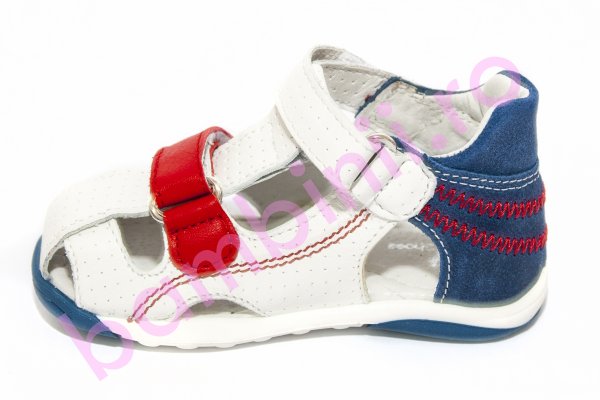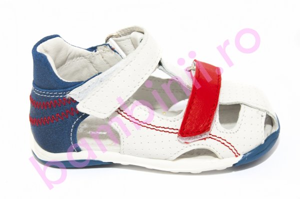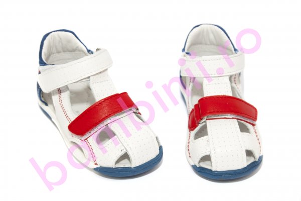 Sandale copii din piele cu talonet Mario alb albastru rosu 18-26