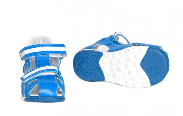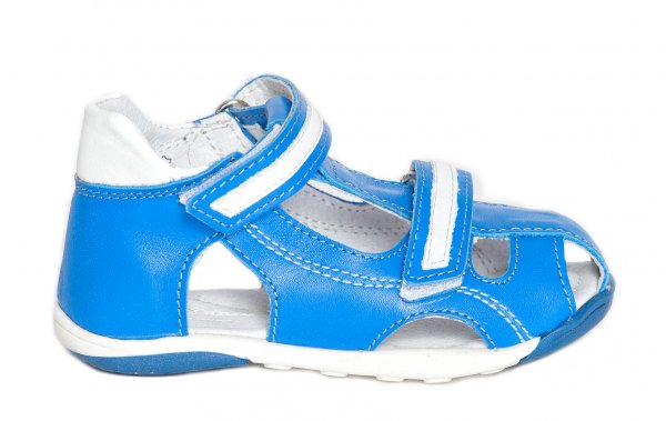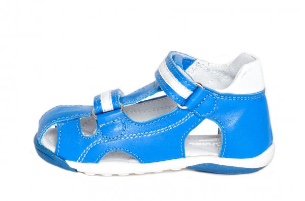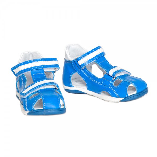 Sandale copii din piele cu talonet pj shoes Mario albastru alb 18-26