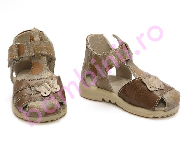 Sandale copii piele 574 maro-auriu