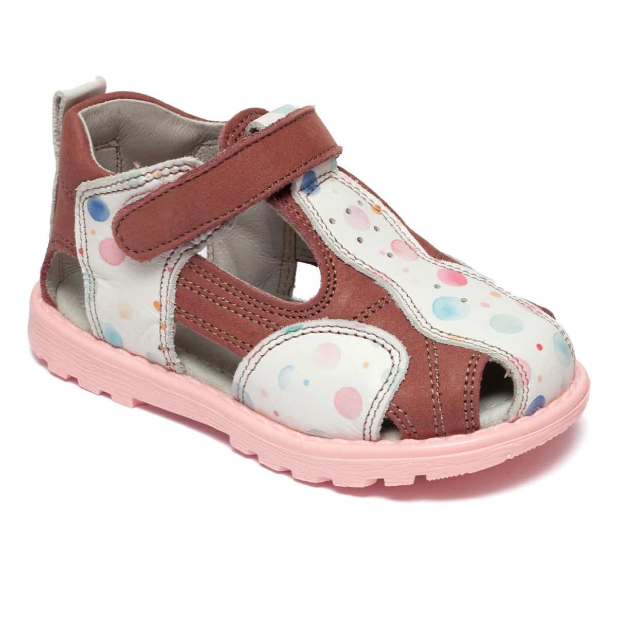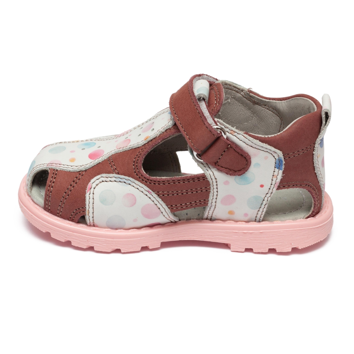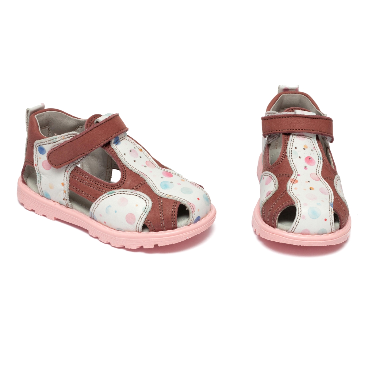 Sandale fete din piele cu talonet AV38 grena alb buline 18-30