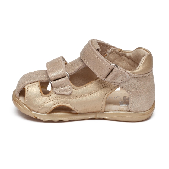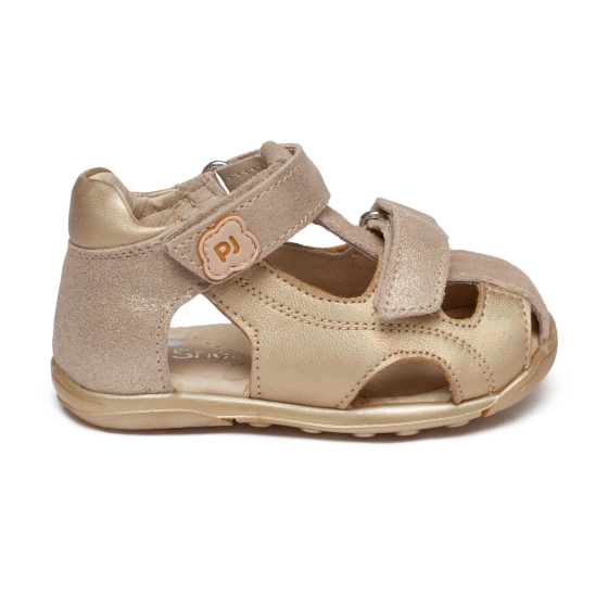 Sandale fete din piele cu talonet pj shoes Mario bej auriu lux 18-26
