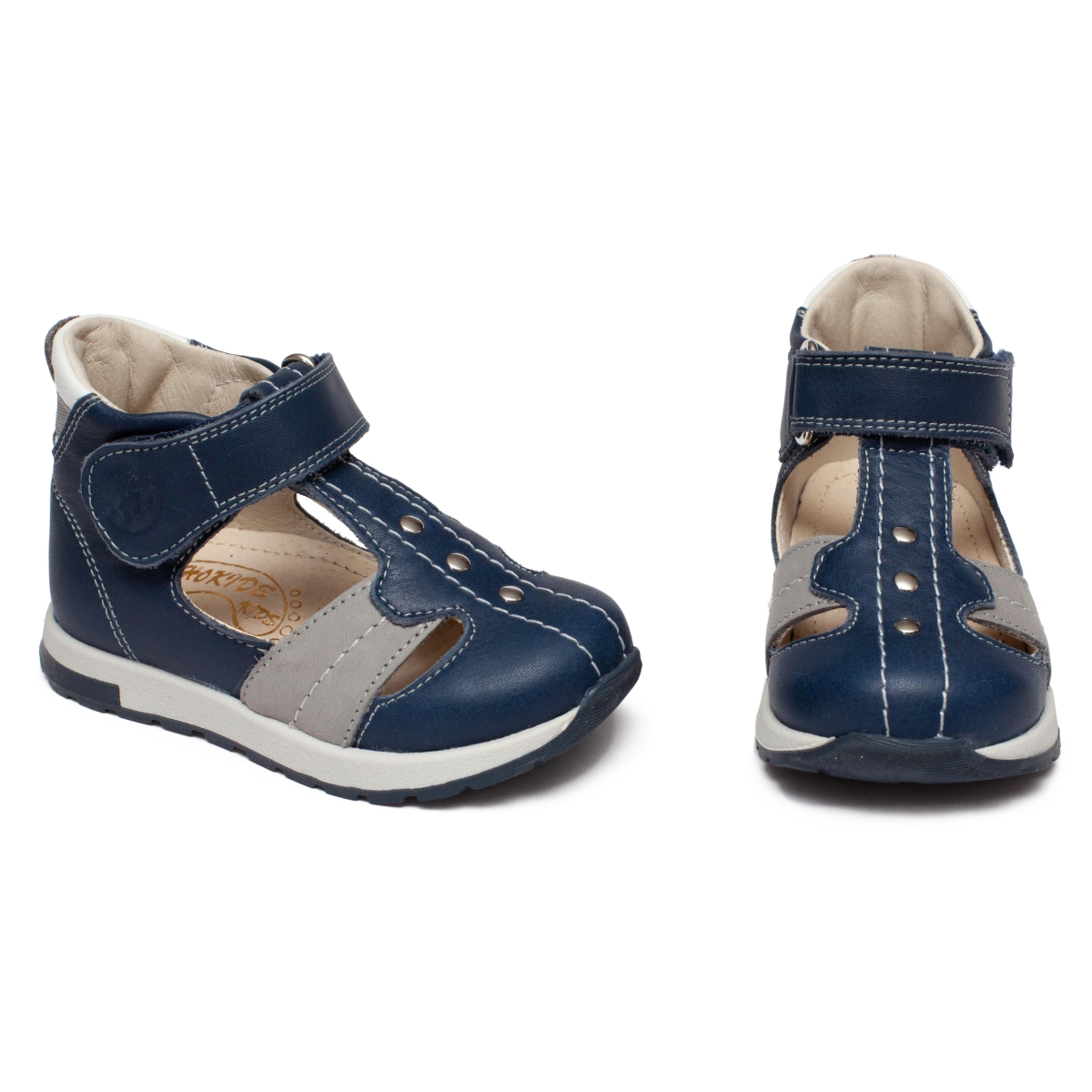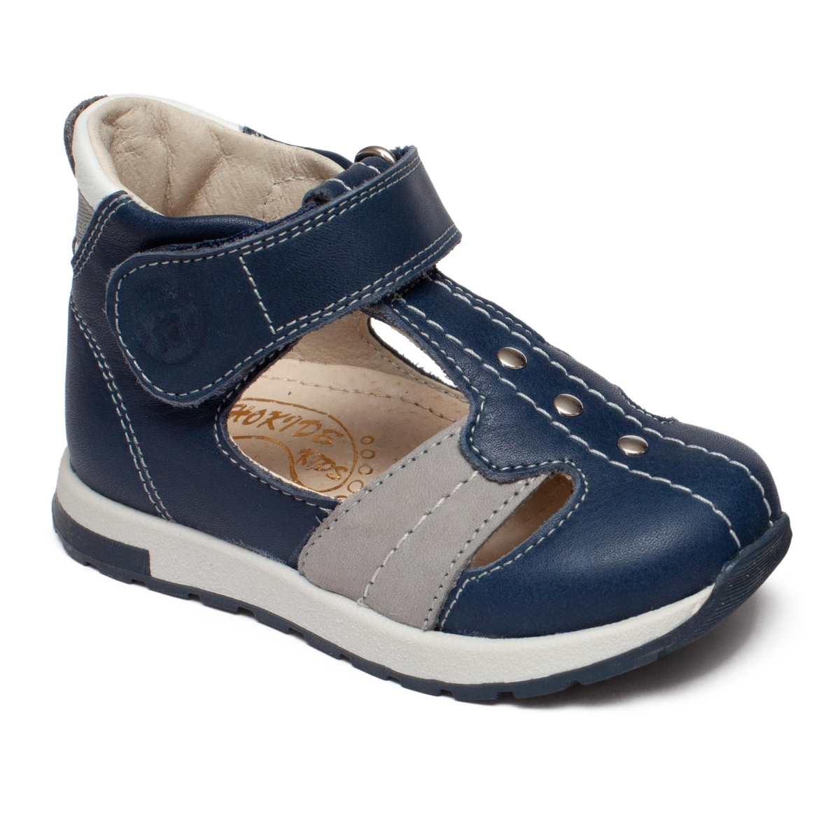 Sandale ortopedice baieti din piele hokide 273 blu gri alb 18-25