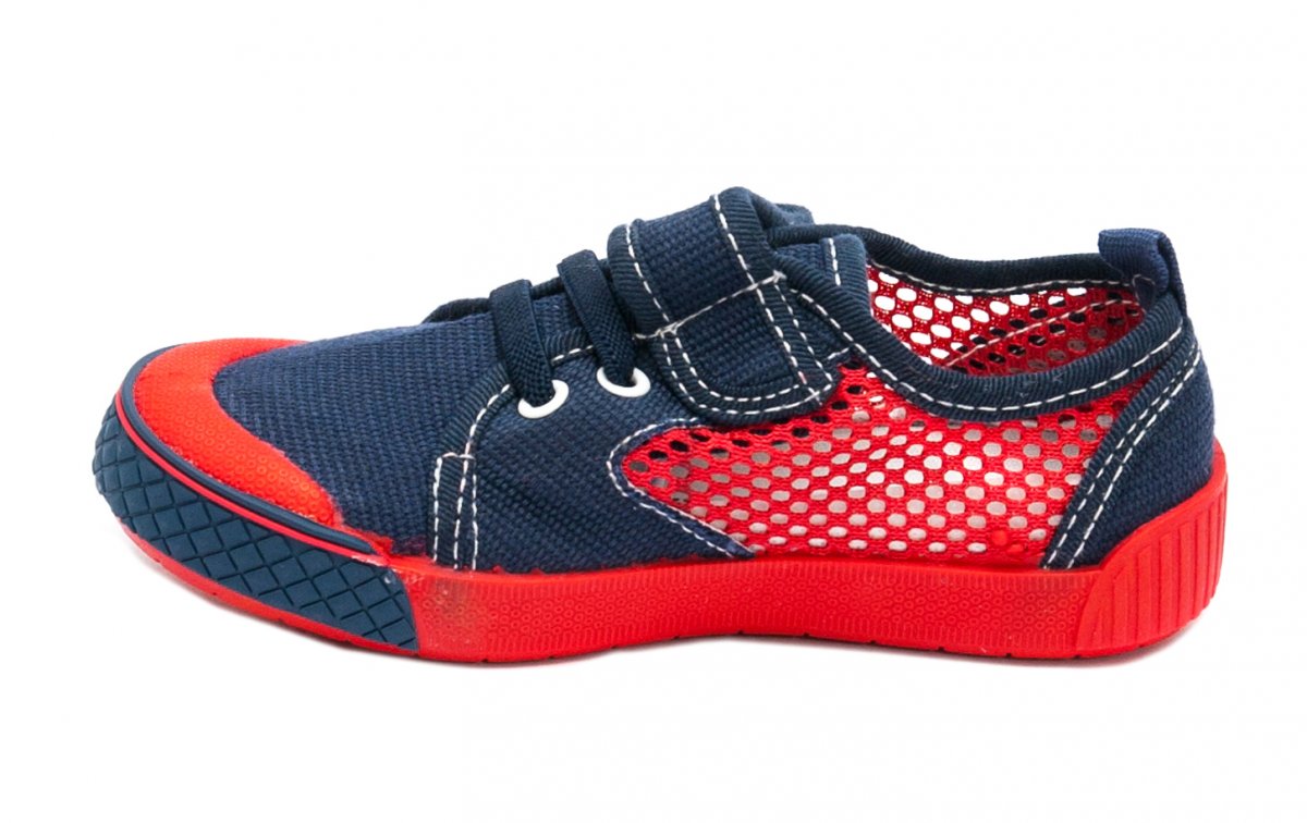 Descriere Incaltaminte baieti textil cu gaurele 9912 blu rosu 26-35
