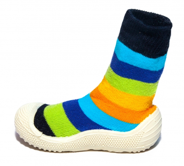Incaltaminte copii de interior flexibila dungi blu galben 22-30