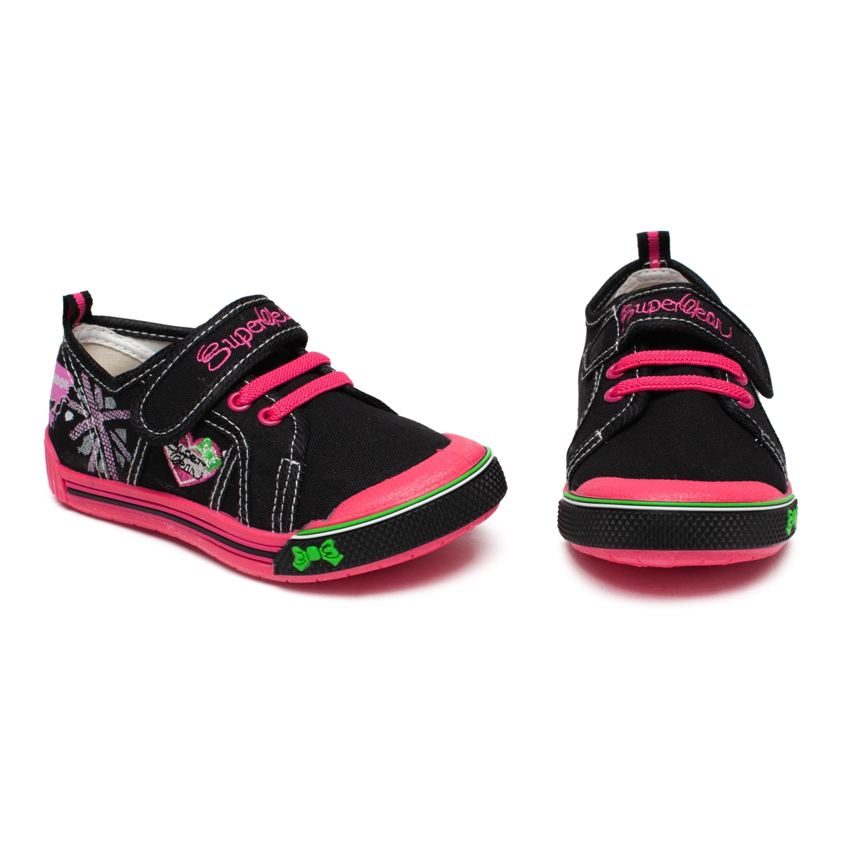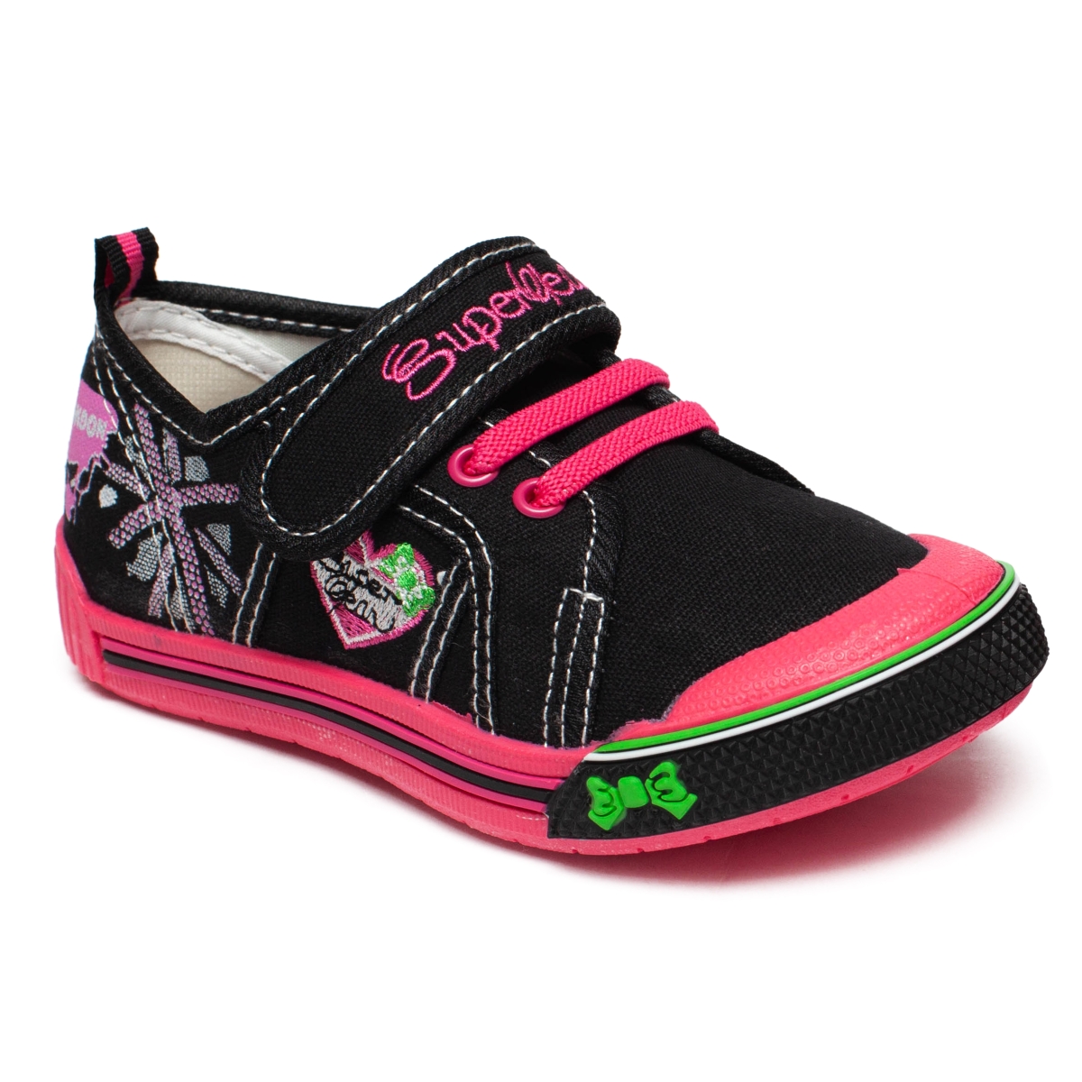 Incaltaminte fete din textil 9949 negru fuxia 26-31