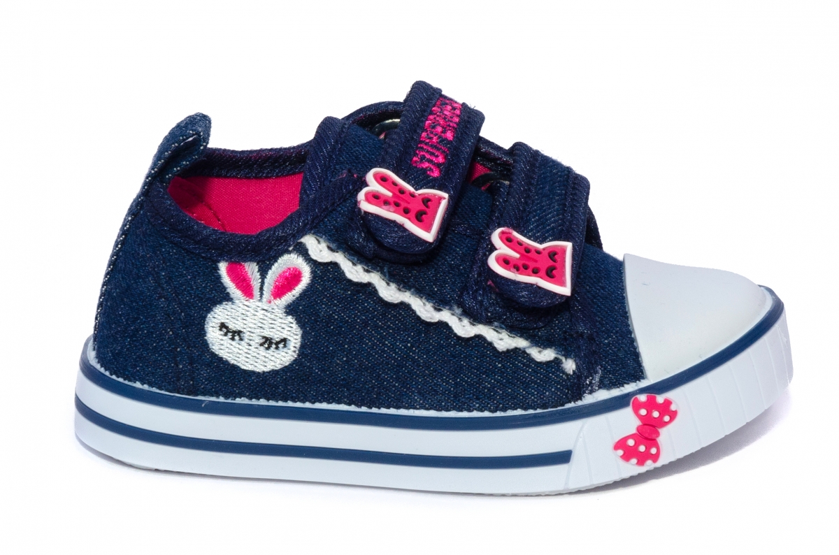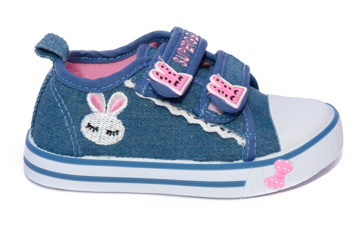 - Tenisi blu cu iepurasi pe bareta si deschidere pe doi arici.