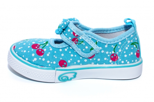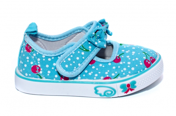 - Tenisi turcoaz cu buline albe, fundita pe bareta si decor cirese.