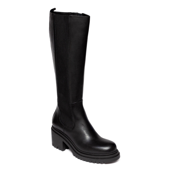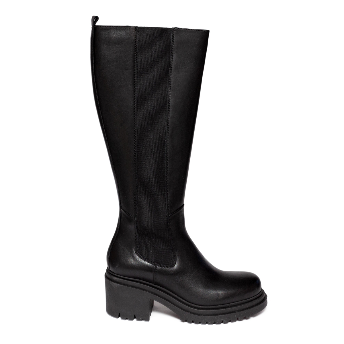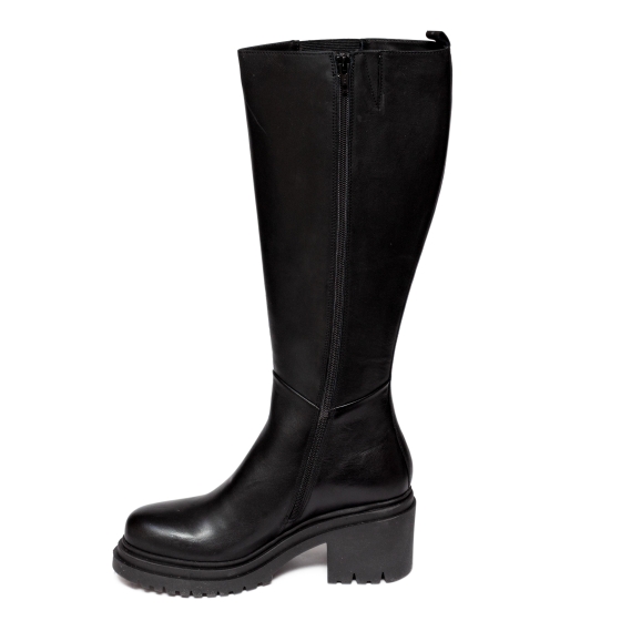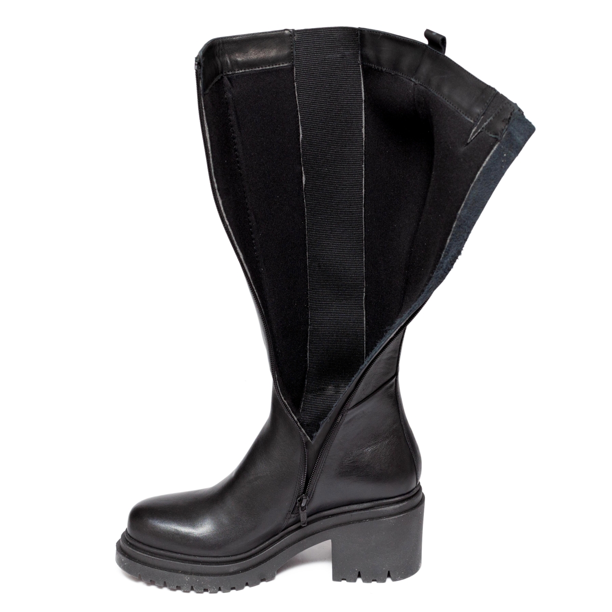Cizme dama lungi din piele cu toc gros de 7cm 7594 negru 35-42