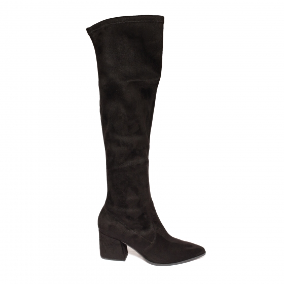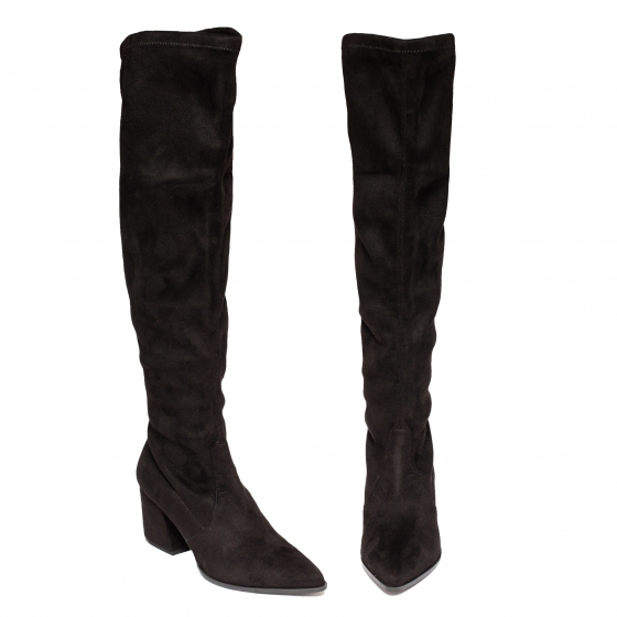 Cizme dama lungi din piele intoarsa exterior , textil la interior . (bembar )