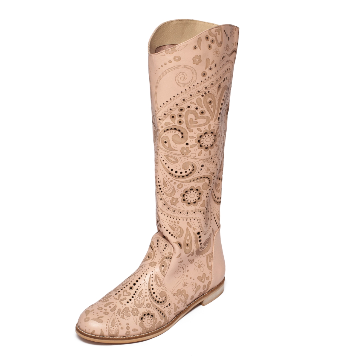 Cizme dama de vara perforate laser din piele 26 roz pal box 33-41