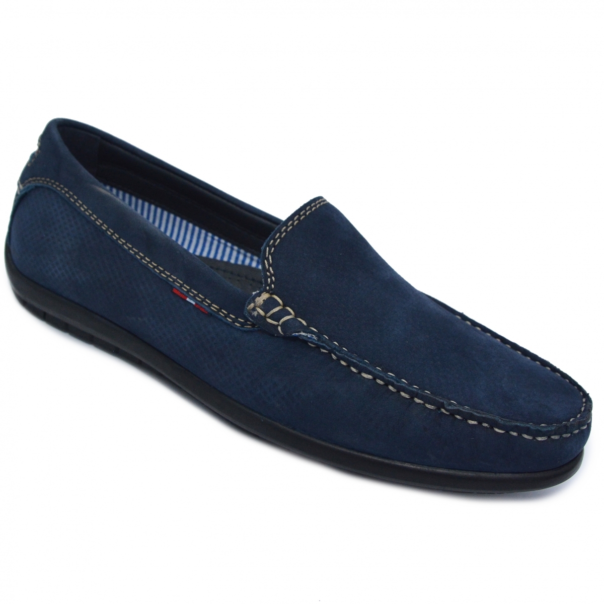 Pantofi mocasini barbati din piele intoarsa exterior, interior textil si bratul din piele naturala .