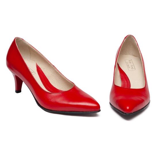 Pantofi dama din piele cu toc de 6cm 951 rosu R 33-41