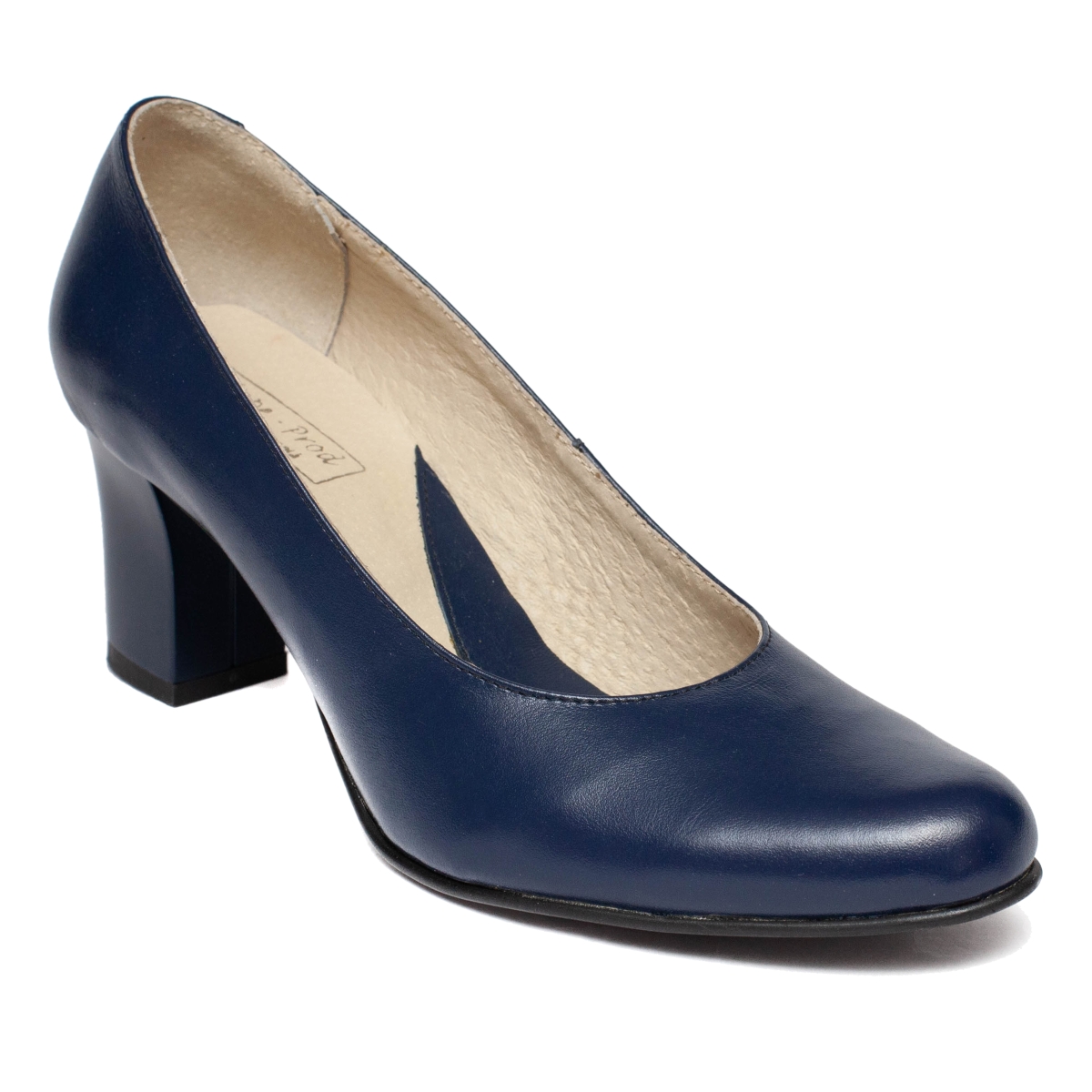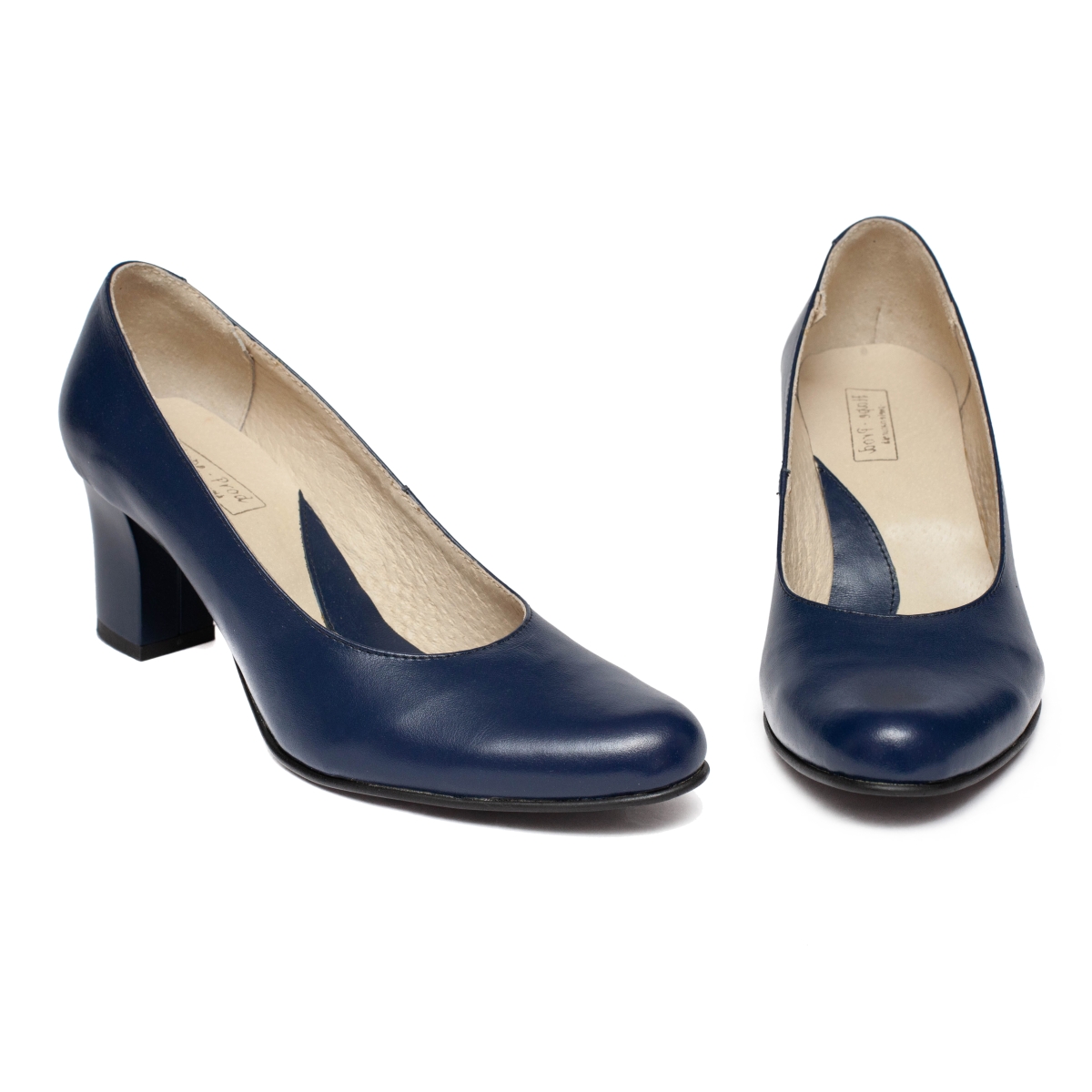 Pantofi dama piele cu toc gros 6cm 951 blu box 34-41