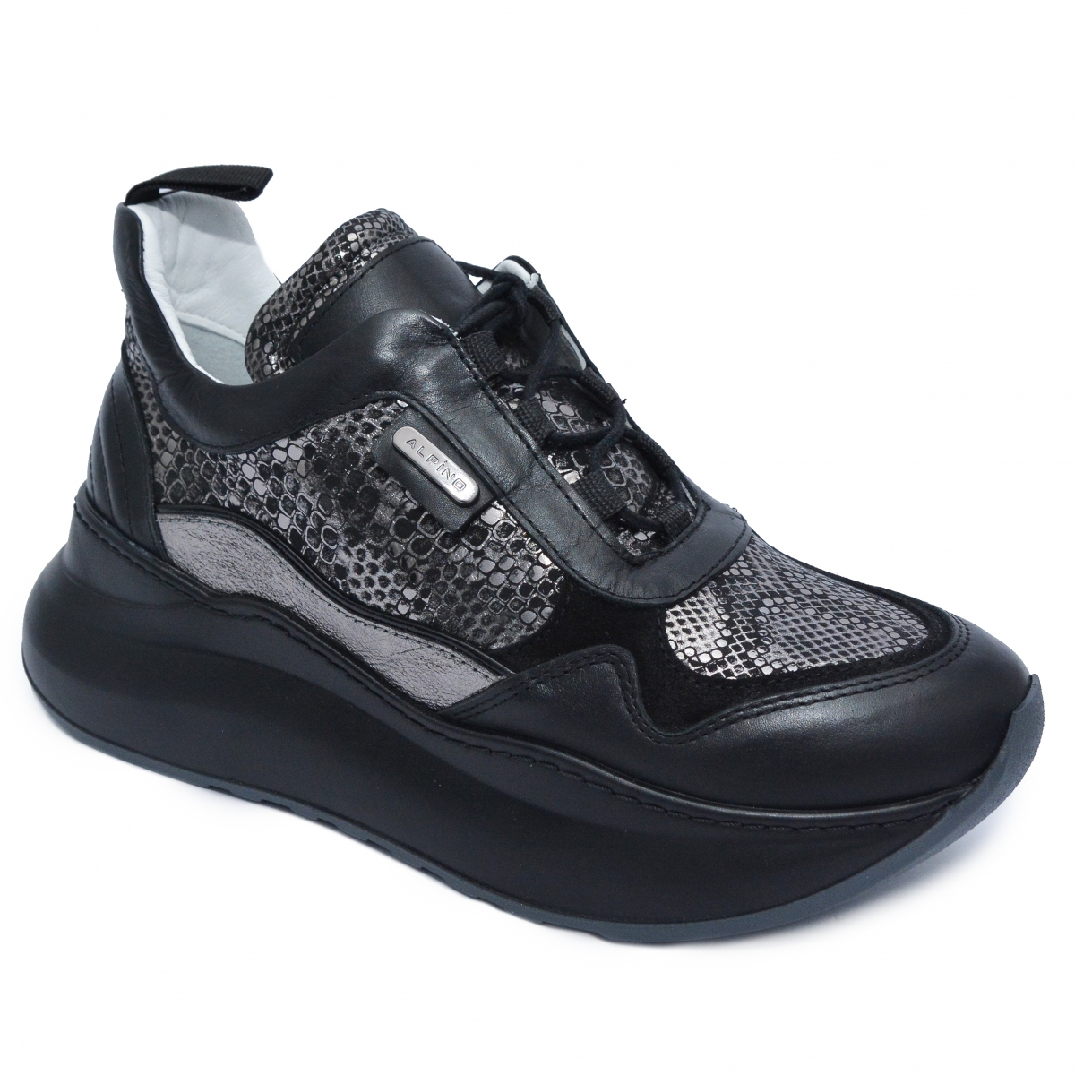 Sneakers dama cu talpa inalta din piele 2048 negru 35-40