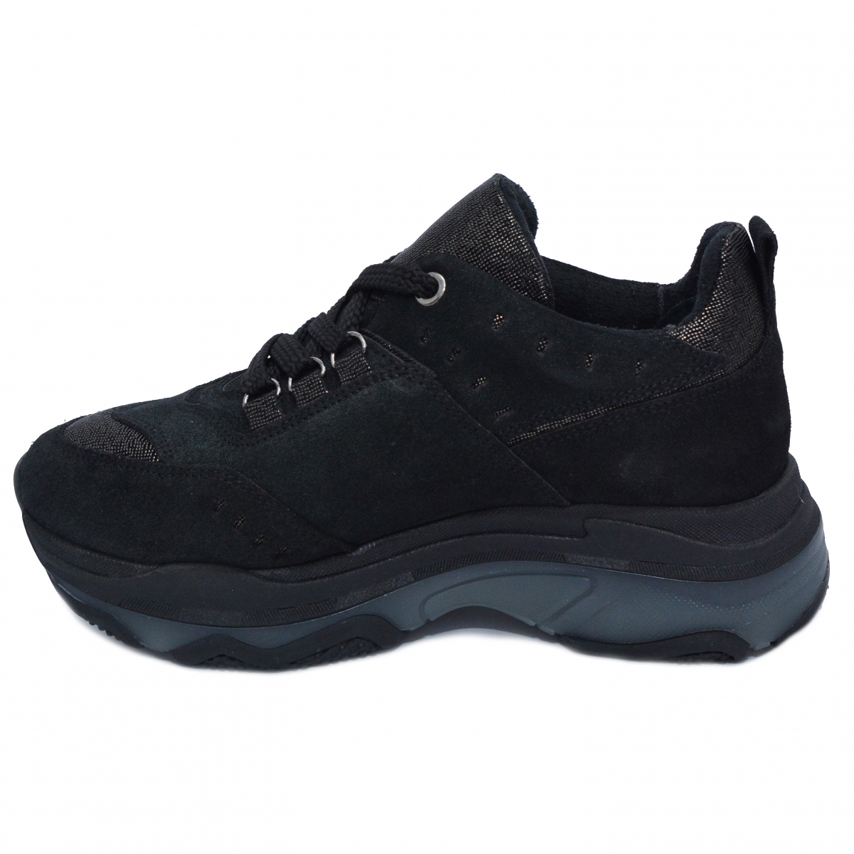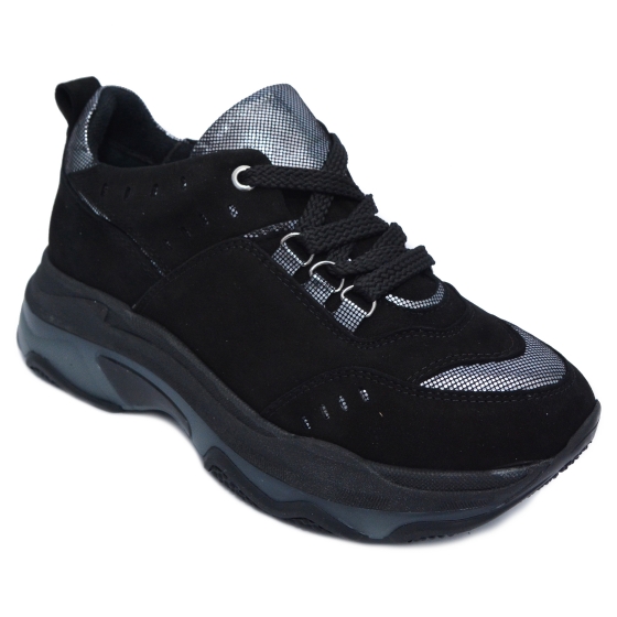 Sneakers dama din piele cu talpa inalta 2032 negru auriu 35-40