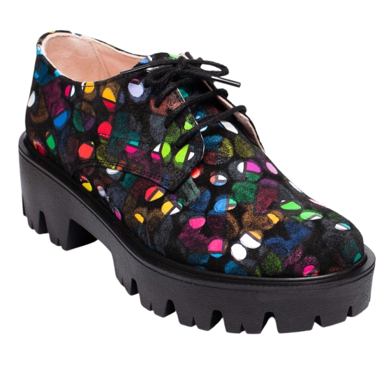 Pantofi dama din piele cu talpa groasa 026B negru arg alb 34-41