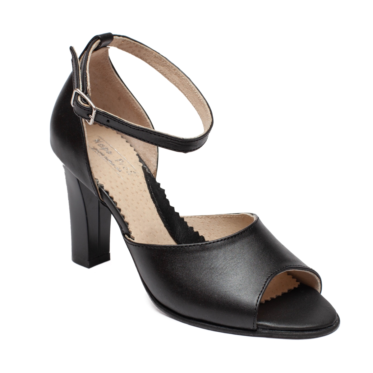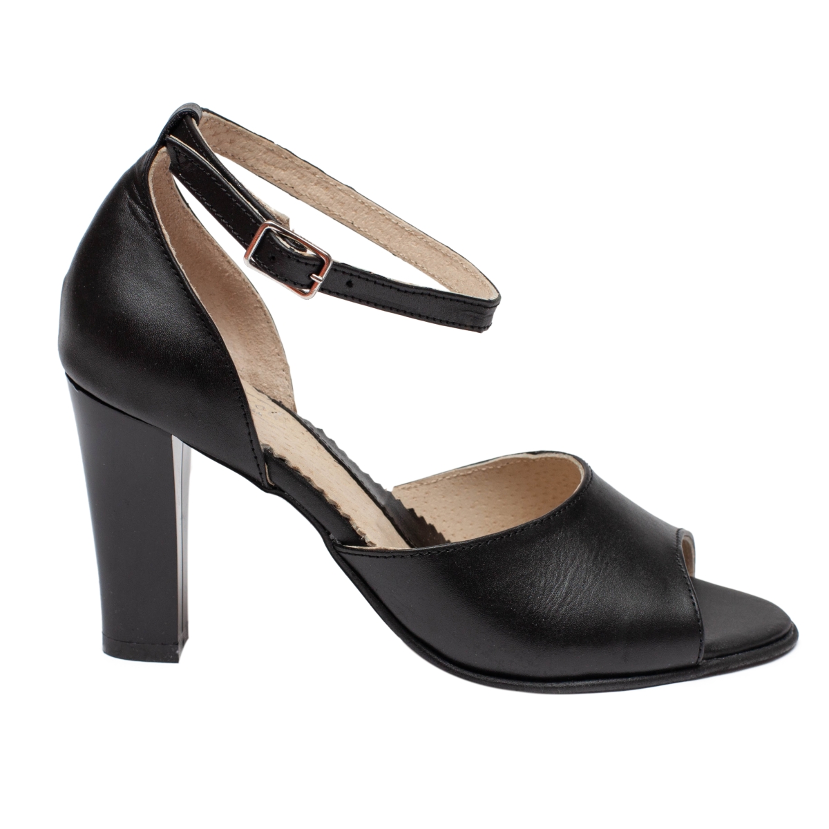 Sandale dama cu toc de 8cm din piele 952 negru 33-40